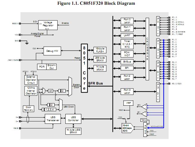 With on-chip Power-On Reset, VDD monitor, Voltage Regulator, Watchdog Timer, and clock oscillator, the C8051F320-GQ is a truly stand-alone System-on-a-Chip solution. The FLASH memory can be reprogrammed in-circuit, providing non-volatile data storage, and also allowing field upgrades of the 8051 firmware. The C8051F320-GQ is specified for 2.7 V- to-3.6 V operation over the industrial temperature range (-40℃ to +85℃). The Port I/O and /RST pins are tolerant of input signals up to 5 V. The C8051F320-GQ is available in a 32-pin LQFP or a 28-pin MLP package.
