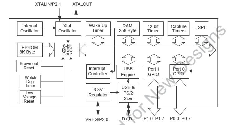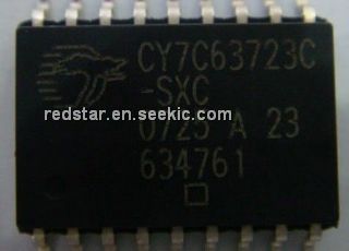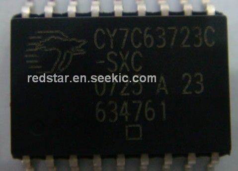The CY7C63723C-SXC is an 8-bit RISC one-time-programmable (OTP) microcontroller. The instruction set has been optimized specifically for USB and PS/2 operations, although the CY7C63723C-SXC can be used for a variety of other embedded applications. The CY7C63723C-SXC features up to 16 GPIO pins to support USB, PS/2 and other applications. The I/O pins are grouped into two ports (Port 0 to 1) where each pin can be individually configured as inputs with internal pull-ups, open drain outputs, or traditional CMOS outputs with programmable drive strength of up to 50 mA output drive. Additionally, each I/O pin can be used to generate a GPIO interrupt to the microcontroller. Note the GPIO interrupts all share the same “GPIO” interrupt vector.