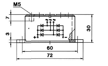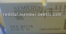 SKD62/16 features: (1)Robust plastic case with screw terminals; (2)Large, isolated base plate; (3)blocking voltage up to 1800V; (4)High surge currents; (5)Three phase bridge rectifier; (6)Easy chassis mounting; (7)UL recognized, file no E63 532.